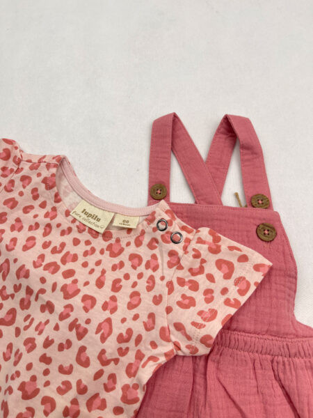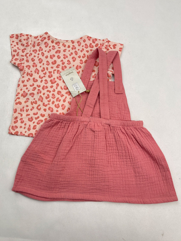 از برند پر طرفدار لوپیلو جنس بیلر دامنی موسیلین ضد حساسیت نرم و لطیف دارای دکمه زاپاس کمر کش بند قابل تنظیم با دکمه تیشرت نخ پنبه کنار یقه دکمه فشاری سبک و لطیف مناسب 9_6 ماه قدتیشرت 39، پهنا 25 قد بیلر 43، کمر 23