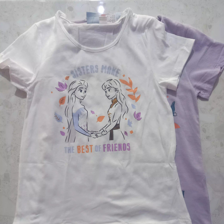 پک 2عددی تیشرت دخترانه برند disney طرح fRozenکیفیت عالی، تمام نخ، سایز 8تا 10سال مناسب قد 134تا140
