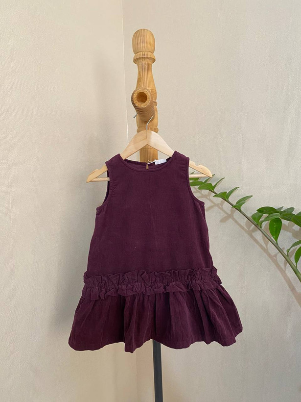 سارافون دخترانه، مخمل کبریتی، آستردار سایز 3تا4سال برند pompedelux دانمارک