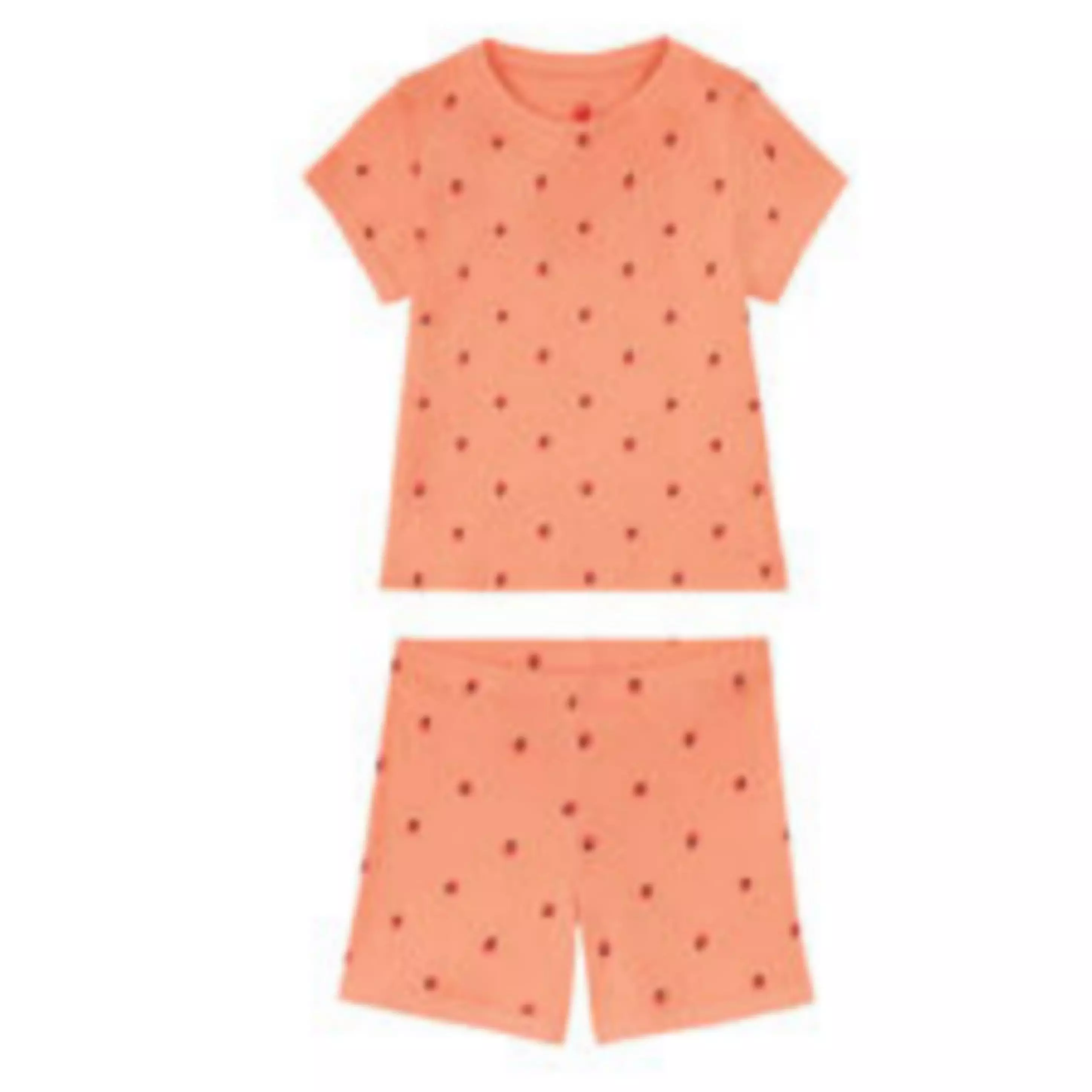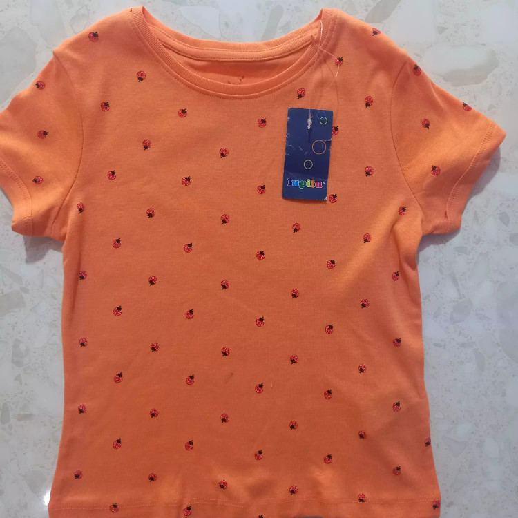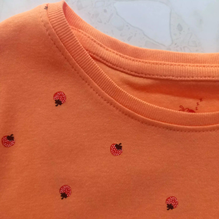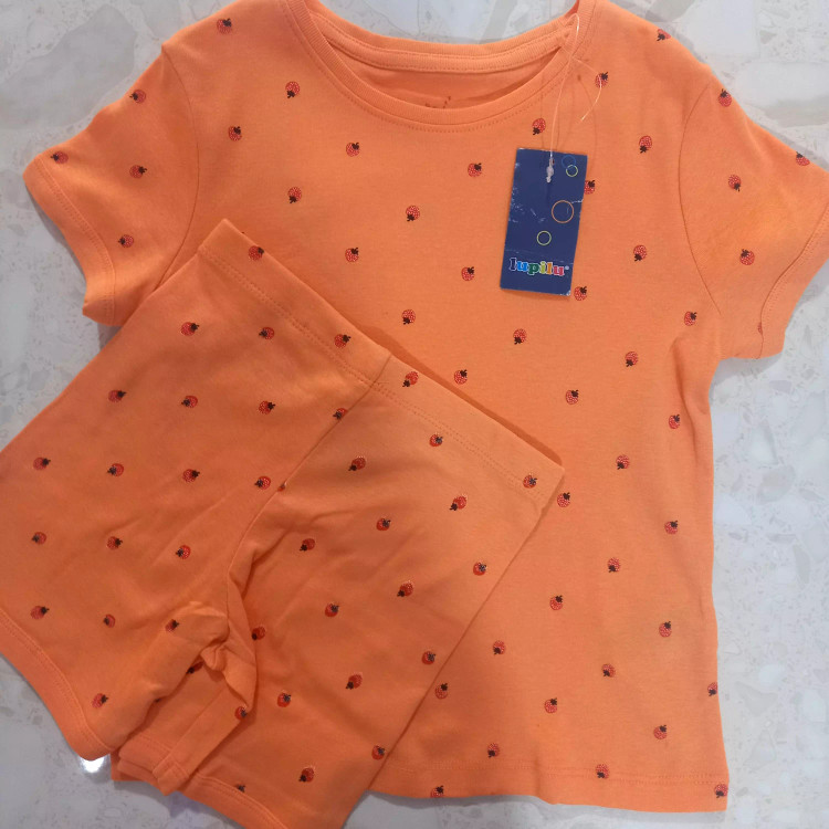 ست تیشرت وشلوارک دخترانه برند لوپیلو آلمان طرح توت فرنگی، تمام نخ ضد حساسیت، ارگانیک، سایز 4تا6سال مناسب قد 110تا116